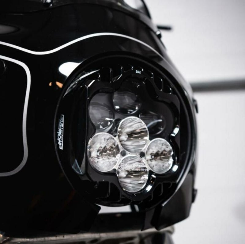 インディアン スカウト/チーフ シリーズ向けのクラブスタイルでは定番的なメンフェスシェード ロードウォリアー(Memphis Shades Road Warrior®)フェアリングにマッチするShark Demon® LED ヘッドライト