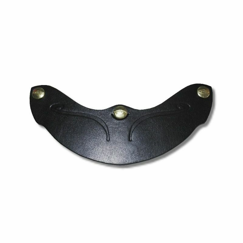 レザー製のヘルメットバイザー。 ●レトロ感たっぷりのレザーバイザー。 ●3つのスナップボタンが付いているヘルメットに装着可能です。 ●レザー製のバイザーはインパクトがあり、ヘルメットに高級感を与えます。 ●ヨーロッパ製の上質な牛革製。 ●厚さ約3.3ミリ ※レザーを曲げながらボタン位置を合わせて取り付けて下さい。