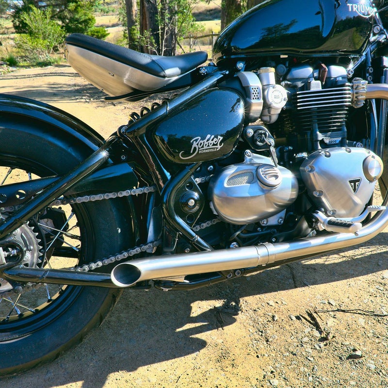 【商品説明】 VEREXのトライアンフ ボンネビル ボバー用スラッシュカット ドラッグパイプ 2 IN 2 フルエキゾーストシステム 2017年から2024年モデルまでのすべてのボバーに対応する、VEREX製ストレート構造のドラッグパイプです。 ・ワンピース構造で、 1.75インチ(44.45mm)のデュアルラジアス・マンドレル曲げヘッダーパイプ採用。 ・クロスオーバー構造で腹下にバランスチューブを配置。 ・ヘッド出口にO2センサーボスを完備。 仕上げ: ブラッシュド(艶消し)、ポリッシュ(鏡面)、ブラックセラミックコーティングの3種類から選択可能です。 注:上記参考写真中のセラミックブラックは仕上げカラーサンプルです。 VEREXの象徴であるデュアルラジアス(複半径)を採用した1.75インチ(44.45mm)ヘッダーパイプと、車体腹下のクロスオーバー構造が特徴です。これらはそのまま2インチ(50.8mm)のスラッシュカットパイプへと繋がり、純正のフレームマウントに直接固定されます。これは真のストレートシステムであり、トルクフルなパラレルツインエンジンの咆哮を解き放ちます。