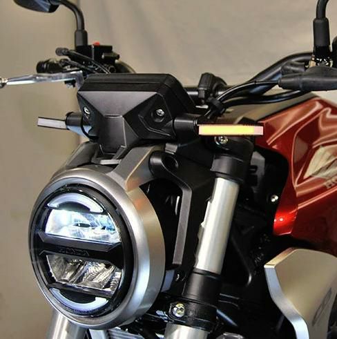 【商品説明】 ホンダ CB250R CB300R 専用設計のLEDフロントウインカー。 CNC削り出しのポリカーボネート製のレンズとアルミブラケットを使用した、 シャープな造形の明るいフロント用ウィンカーです。 車種に合わせた設計により、純正ウィンカーから簡単かつ素早く交換が可能です。 抵抗はついていないので、ハイフラになる可能性がございます。