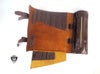 【商品説明】 プレミアムな牝牛のオイルレザーを使用したロール式のツールバッグ スパナやプライヤーとドライバーを入れるスロットが各6個と小物を入れるポーチ部にはジッパー開閉になります。 フラップ部はバックルのついたレザーストラップ2本締めで、又、バイクへの取り付けにも行います。 カラーはブラック、ダークブラウン及びタンから選べます。 注:上記参考写真はダークブラウンカラー以外のカラーも含みます