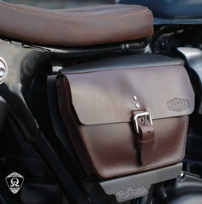ラッシュカスタム 水冷 ボンネビル バッグ付サイドカバー ブラック/ブラウン Omega Racer