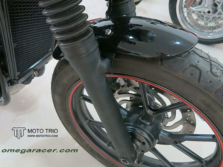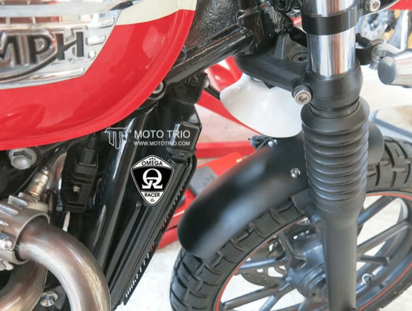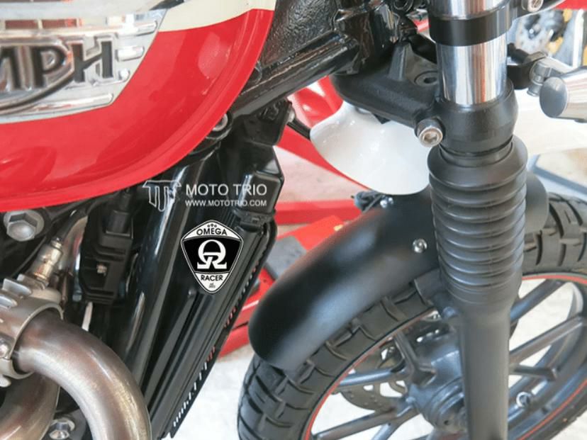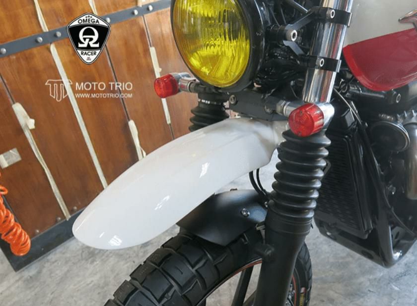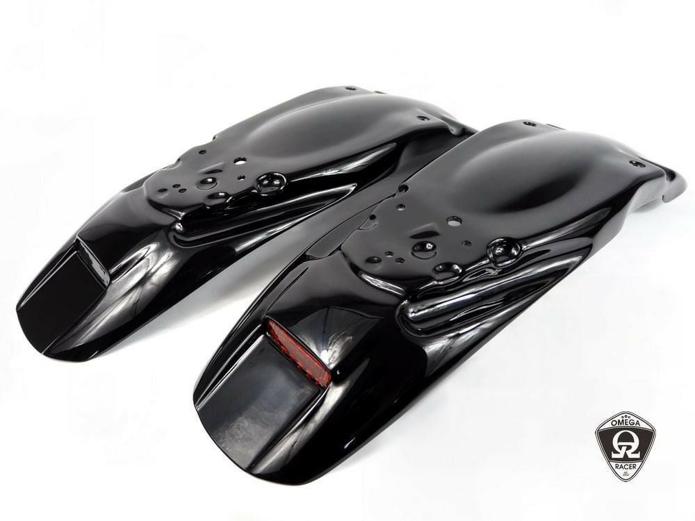 モトトリオ(MotoTrio) 水冷 ボンネビル ダートスタイルリヤフェンダー グロスブラック/レッドレンズ Omega Racer
