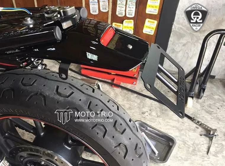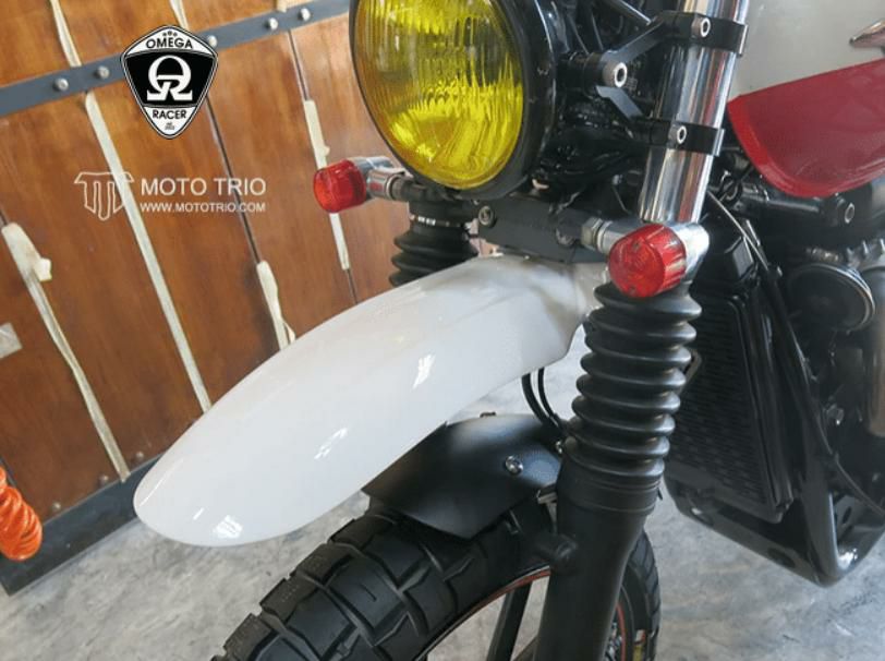 モトトリオ(MotoTrio) 水冷 ボンネビル ダートスタイルリヤフェンダー マットブラック/レッドレンズ Omega Racer