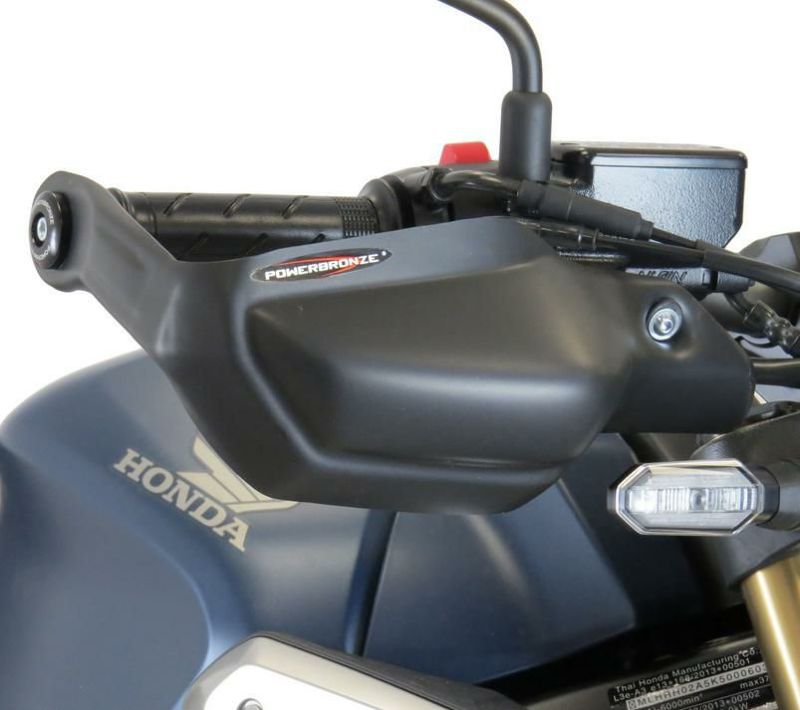 【商品説明】 ホンダ CB650R用のハンドガード Powerbronzeの新しいスタイリッシュなハンドガードは、風や天候から手を保護するための必需品です。 - ABS樹脂製 - シンプルで簡単に装着可能 - ブラックアルマイトのPowerbronzeバーエンド付き