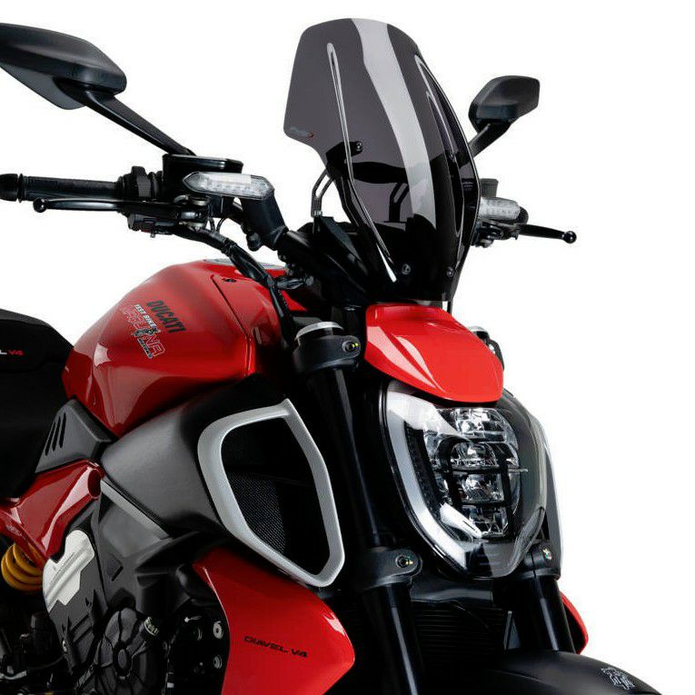 motoGPをはじめ数多くのレースのスポンサー、サプライヤーを務めているスペインのメーカーPUIG(プーチ)のDUCATI(ドゥカティ) ディアベルV4(Diavel)用スクリーン。