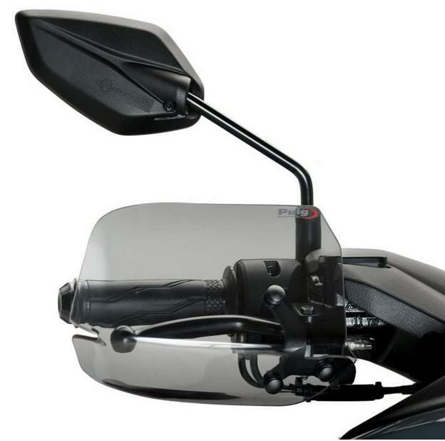 左右のブレーキレバー下に付属のステーを装着し、ハンドガードを容易に装着できます。同メーカーのスクリーンとの併用も可能です。