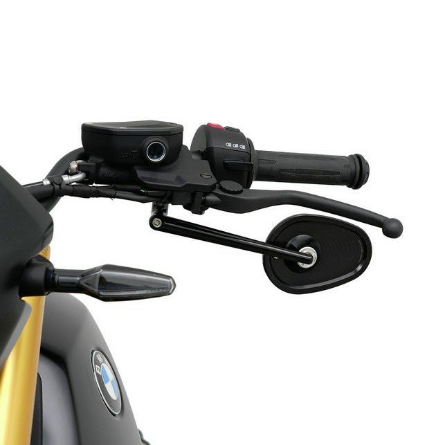 ● 専用CNC削り出しアダプター: BMWロゴが施された高品質なマットブラックアルマイト仕上げのクランプが付属。純正品よりも低く設計されており、アンダーバースタイルを完璧に補完します。