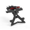 ナンバープレートホルダーは角度・位置の調整が可能で、日本の車検基準にも対応。さらに、小型ながら高輝度なSMD LEDナンバー灯を装備し、視認性とデザイン性を兼ね備えています。