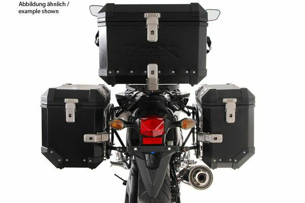 EVOサイドケースホルダーは別売りのアダプターパーツを使って、GIVIやHepco&Becker、SHAD等の主要各社のサイドケースを搭載可能にする汎用性の高いサイドキャリア。