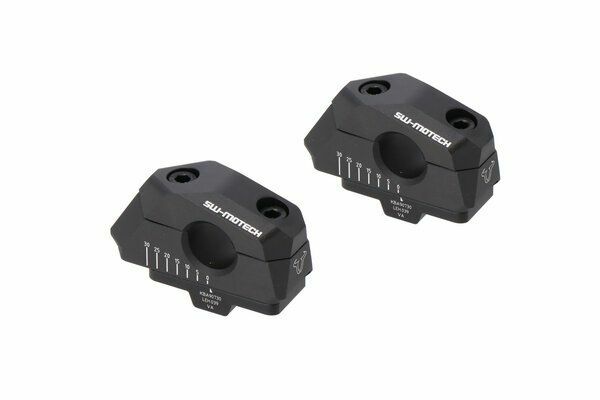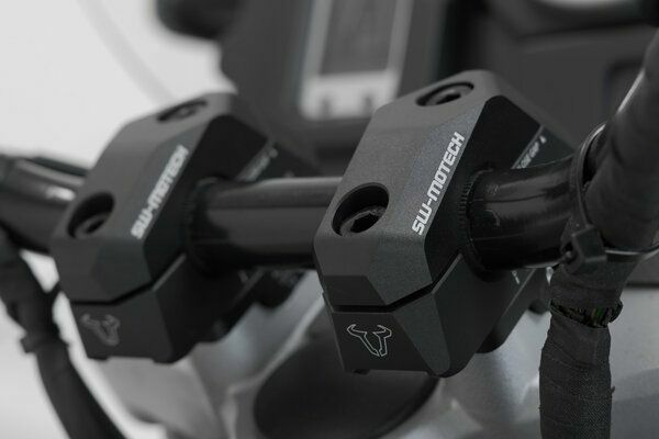 SW-MOTECH製の22mmハンドルバー専用アルミ製バリアブルバーバック(高さ 25mm / 5-30mmバック)