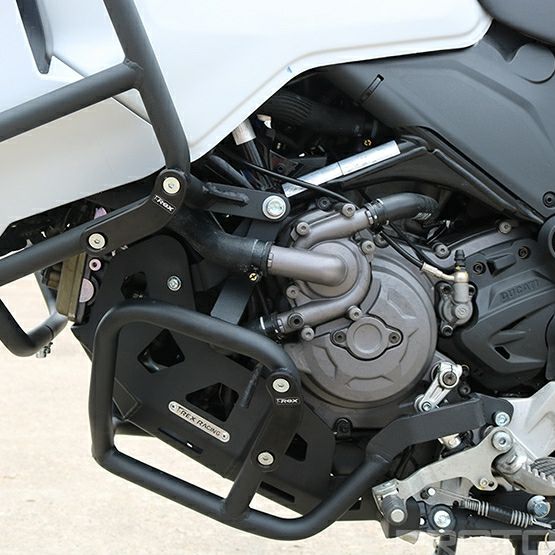 【説明】 T-レックス レーシングの DUCATI デザートX(DESERT X)用 ボトムエンジンガード。 T-Rexレーシングの トップガード、センタースタンド、スキッドプレートと併用可能。 OEMのスキッドプレート、エンジンガード、センタースタンドと互換性があります。 スチールチューブには4つの取り付けポイントがあり、転倒時衝撃を分散させます。 また、ガードの強度をさらに高めるため、中央にはブレースが付いています。