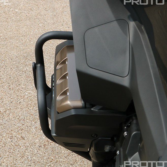 転倒時に最初に路面と接触するように緻密に計算されたデザイン。衝撃を効果的に分散し、エンジンケース、ラジエーター、そしてサイドフェアリングといった重要かつ高価なコンポーネントを強力に保護します。