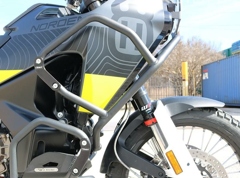 【商品説明】 T-REXレーシングのノーデン901用エンジンガードクラッシュケージトップサイド エンジンマウント部とスキッドブレートボルトを使用して取付け、クロスバーで左右チューブを連結して剛性を高めています 又、1インチスチールチューブのガード端部にはアルミ製スキッドを装着 T-REXレーシング製スキッドプレート:N175-21SP、エンジンガードクラッシュケージ ボトムサイド:N163-19EGBOT との併用が可能です ハスクバーナ純正のスキッドプレートを装着している場合は、901 Expedition向けをご選択ください。