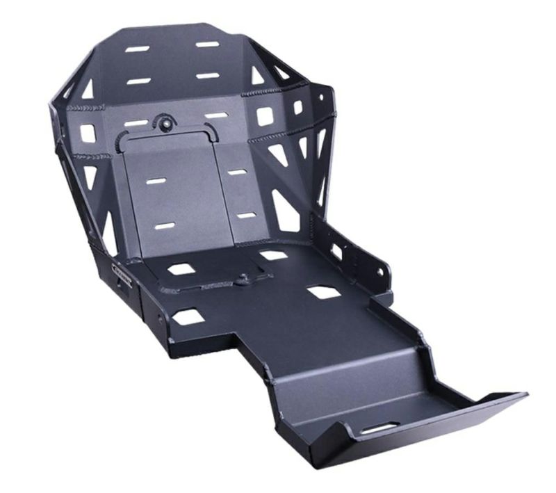 【商品説明】 テネレ700用のスキッドプレート オフロードはもちろん、グラベルロード走行時の飛び石や泥からエンジン下部をガードします 又、リヤサスペンションリンケージまでカバーする仕様です 材質:4mm厚 高精度CNC加工航空機グレードアルミニウム 取り外し可能なキャップによりオイルフィルターにも簡単にアクセス出来ます ブラックパウダーコート仕上げ