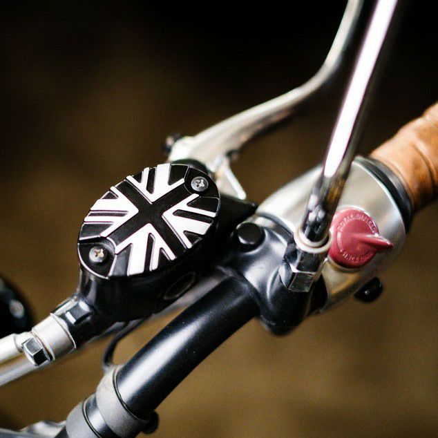 クラシックスタイルとモダンな精密加工が融合した、Trip Machine製のブレーキ・クラッチ用リザーバーキャップ。