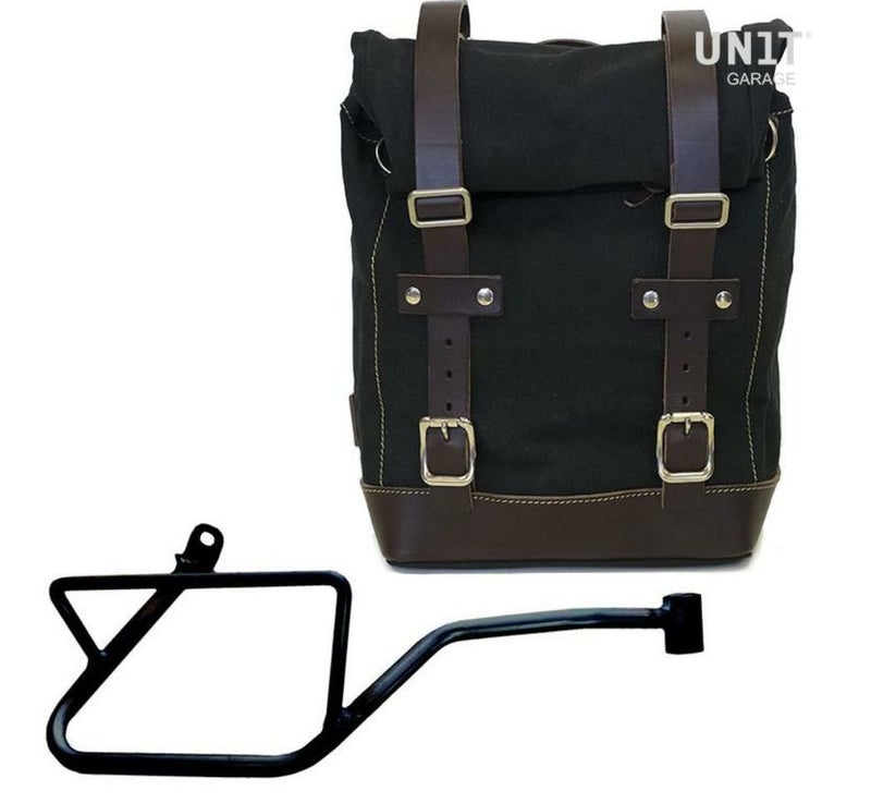 モトグッチV7 850 キャンバスサイドバッグ ブラック/ブラウン&サポート 右側 ユニットガレージ