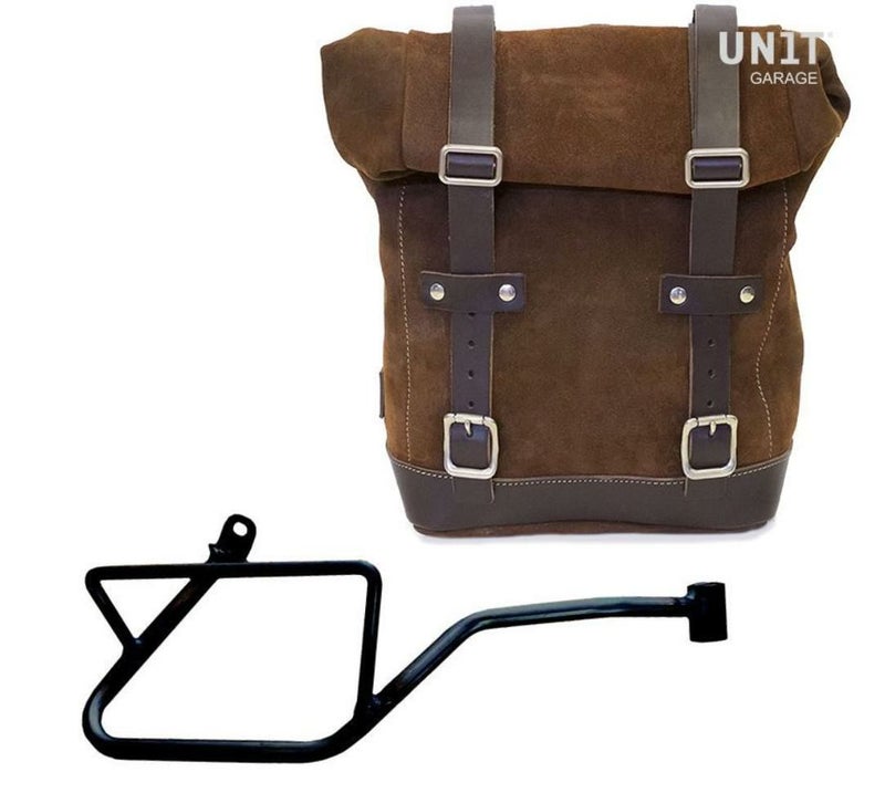 モトグッチV7 850 ワックスドスウェードレザーバッグ コロラドブラウン&サポート 右側 ユニットガレージ