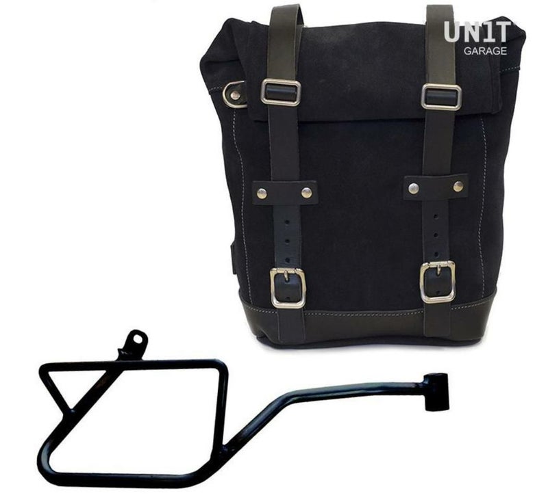 モトグッチV7 850 ワックスドスウェードレザーバッグ ジェットブラック&サポート 右側 ユニットガレージ