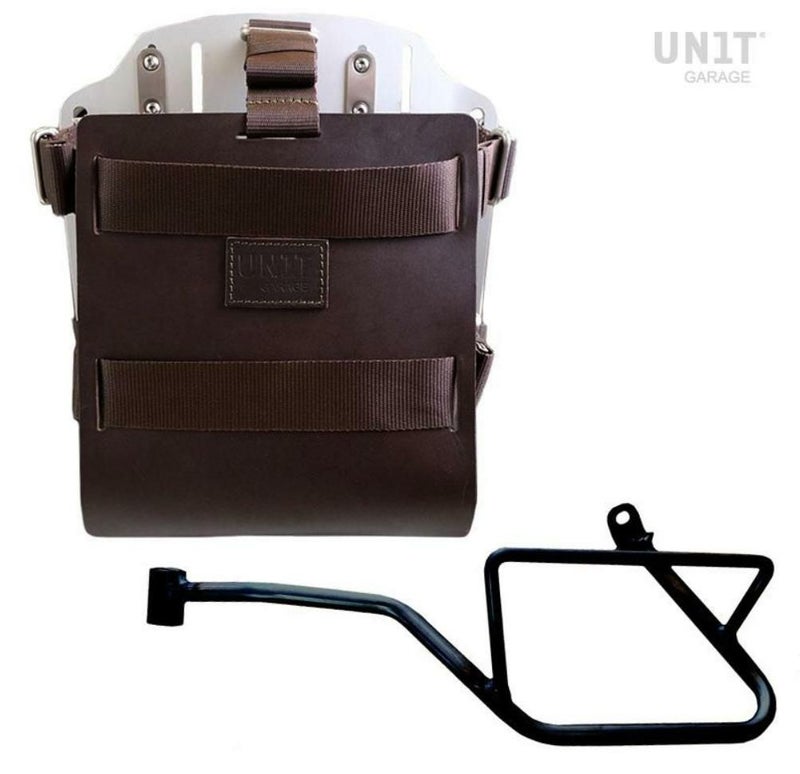 モトグッチV7 850 アルミバック/ブラウンレザーフロント バッグホルダー&サポート 左側 ユニットガレージ