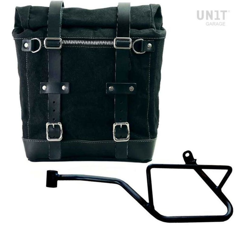 モトグッチV7 850 キャンバスサイドバッグスクラム22-30L ブラック/ブラック&サポート 左側 ユニットガレージ