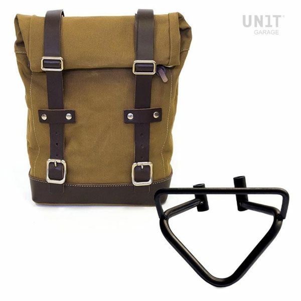 ハスクバーナ スヴァルトピレン/ヴィットピレン サイドバッグ(キャンバス地) ベージュ/ブラウン&サイドバッグサポートフレーム左側 キット ユニットガレージ