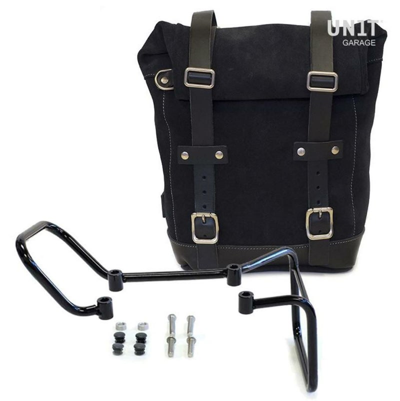 ハスクバーナ スヴァルトピレン/ヴィットピレン ワックス防水加工スエードレザーサイドバッグ ジェットブラック &リヤサポート フレームキット ユニットガレージ