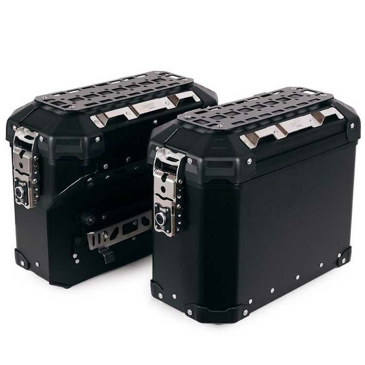 高強度アルミニウム合金ボディ(1.5mm厚、取付部4mm)と、研磨・電解研磨仕上げのステンレス製ヒンジ/ロック/ボルトを組み合わせ、悪路や長距離でも安心できる剛性と耐久性を実現。