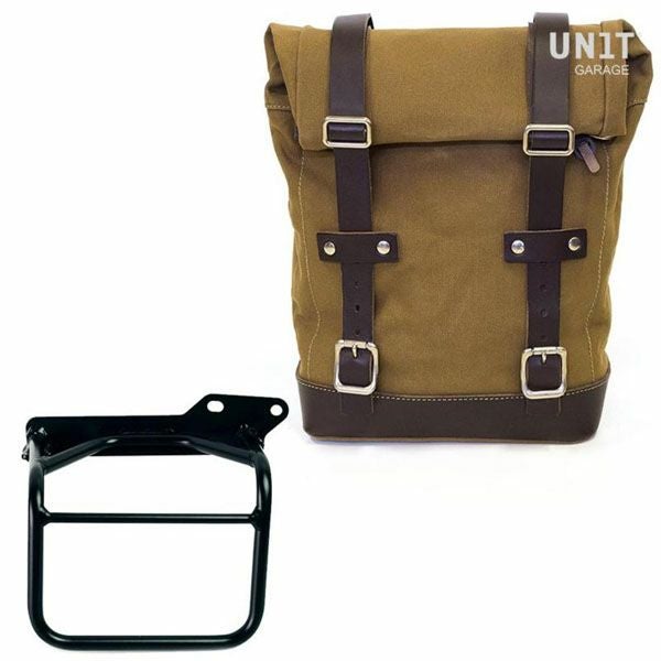 ロイヤルエンフィールド ヒマラヤ/スクラム411サイドバッグ(キャンバス地) ベージュ/ブラウン&サポート フレーム右側 キット ユニットガレージ