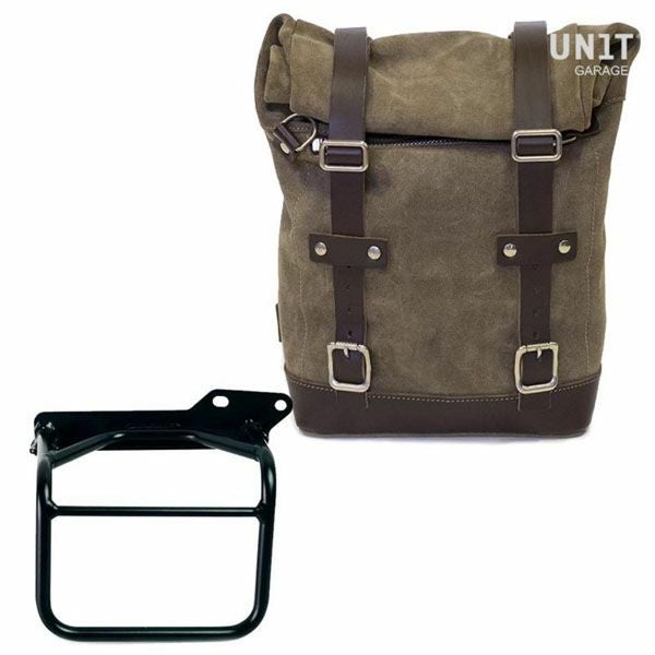 ロイヤルエンフィールド ヒマラヤ/スクラム411 ワックス防水加工スプリットレザーサイドバッグ モスグレイ &サポート フレーム右側 キット ユニットガレージ