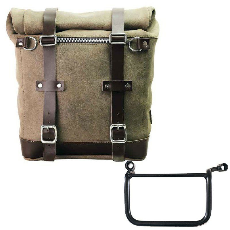 ヒマラヤ450 ワックススウェード製 サイドバッグ スクラム 22-30リットル モスグレー + サイドバッグフレーム 左側 UNIT GARAGE