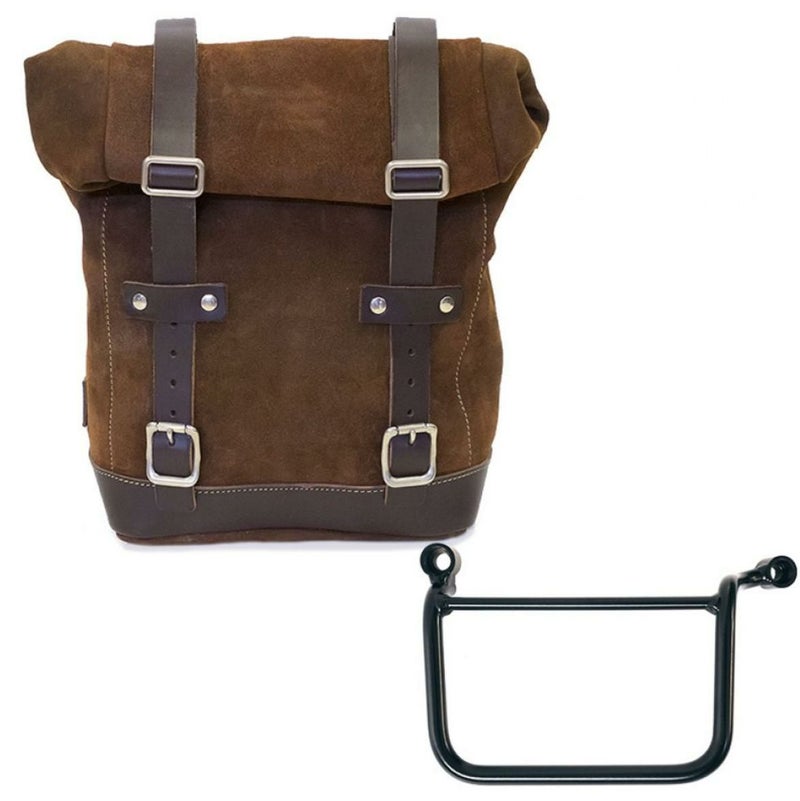 ロイヤルエンフィールド ゲリラ450 ワックス防水加工スプリットレザーサイドバッグ 10L-14L コロラドブラウン &サポート フレームキット 左側 ユニットガレージ