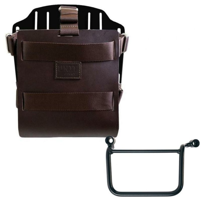 ロイヤルエンフィールド ゲリラ450 アルミナムブラックバックホルダーブラウンレザーフロント&サポート フレームキット左側 ユニットガレージ