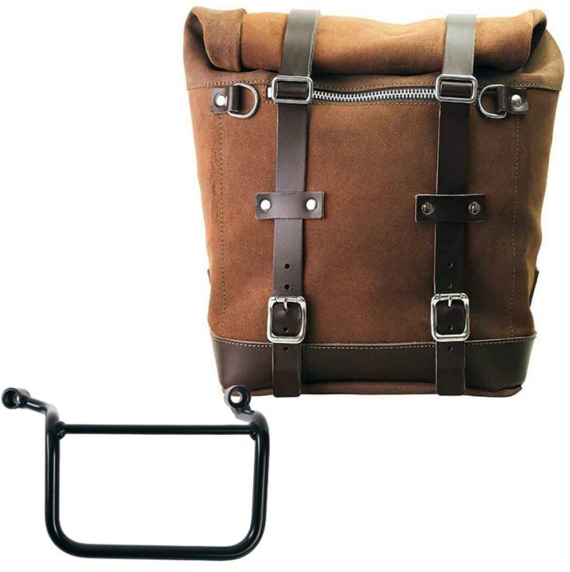 ロイヤルエンフィールド ゲリラ450 ワックス防水加工 スプリットレザーサイドバッグ スクラム 22-30L コロラドブラウン &サポート フレーム 右側 キット ユニットガレージ
