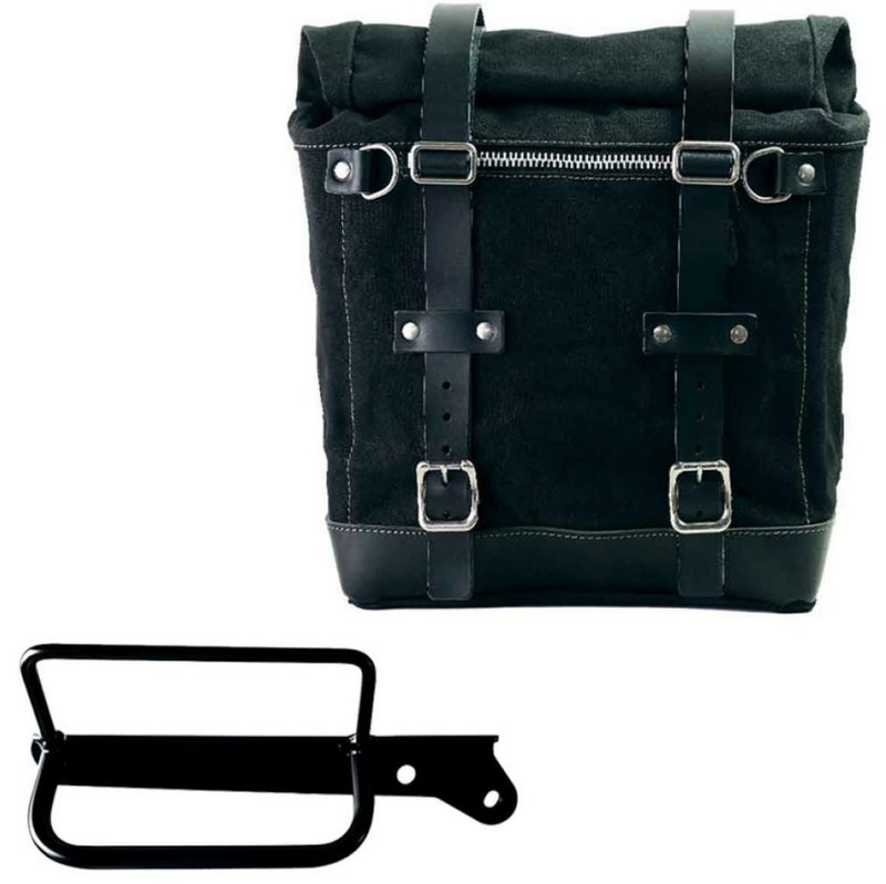 ロイヤルエンフィールド ハンター350 サイドバッグ(キャンバス地) スクラム22-30L ブラック/ブラック&サポート フレーム 右側 キットユニットガレージ
