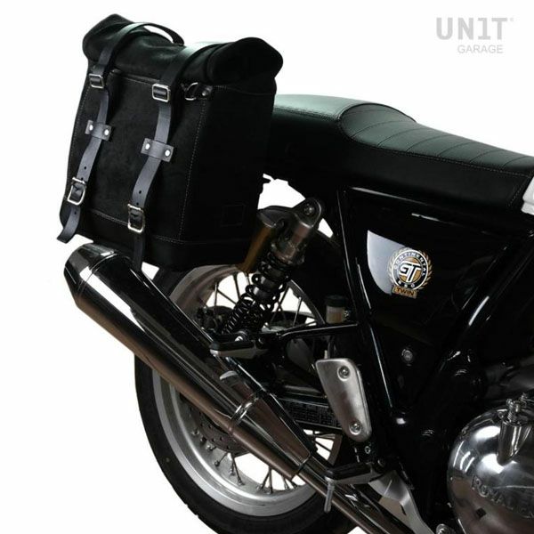 ロイヤルエンフィールド コンチネンタル/インターセプター650/ベア650 ワックス防水加工スプリットレザーサイドバッグ ジェットブラック &サポート フレームキット ユニットガレージ