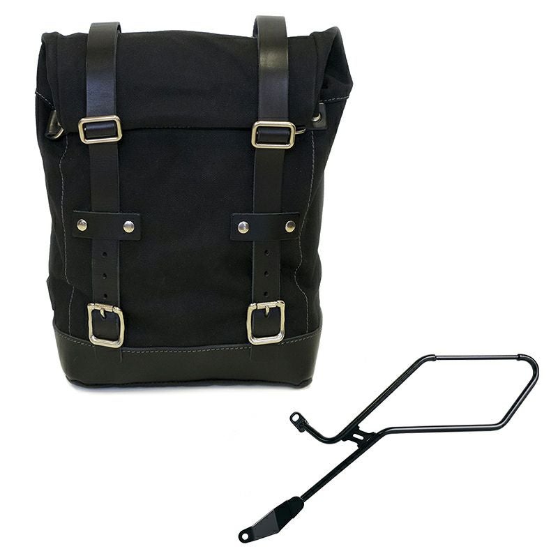 トライアンフ ボンネビル ボバー専用、UNIT GARAGEのキャンバス製サイドバッグと左側サポートフレームのセットです。
