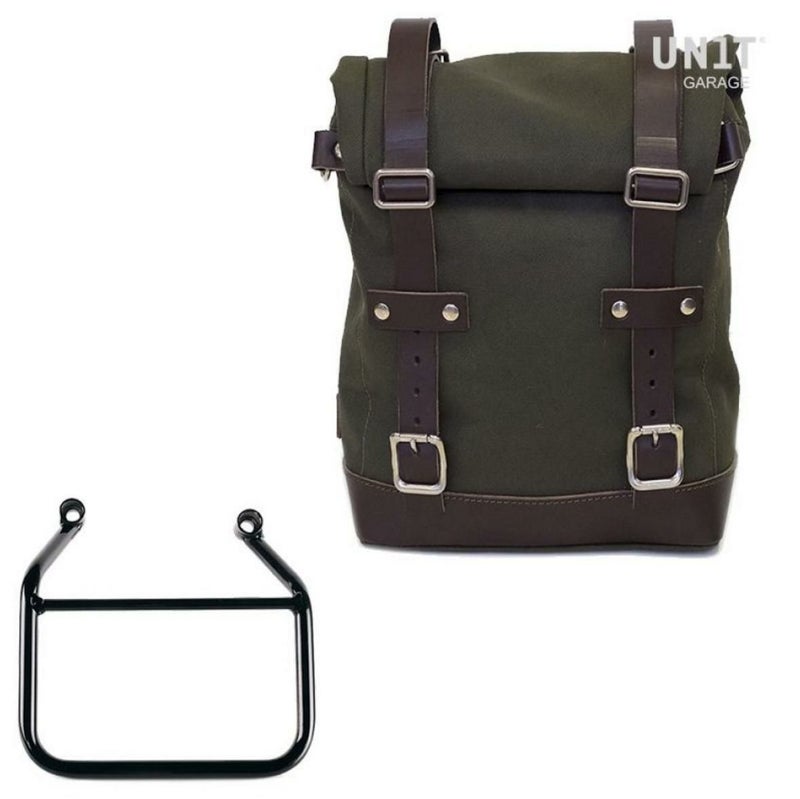 トライアンフ スピード400/スクランブラー400X サイドバッグ(キャンバス地)グリーン/ブラウン&サイドバッグサポートフレーム右側 キット ユニットガレージ