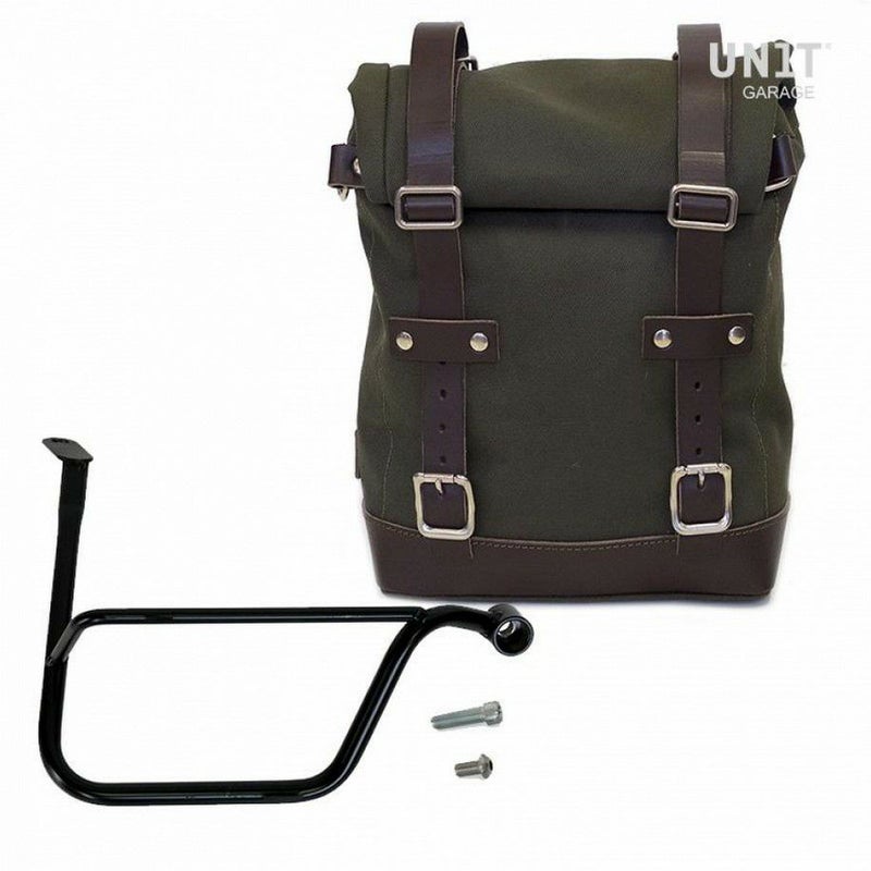 スラクストン/R/RS スピードツイン1200 サイドバッグ キャンバス 10L-14L グリーン/ブラウン + 右側サイドバッグフレーム UNIT GARAGE