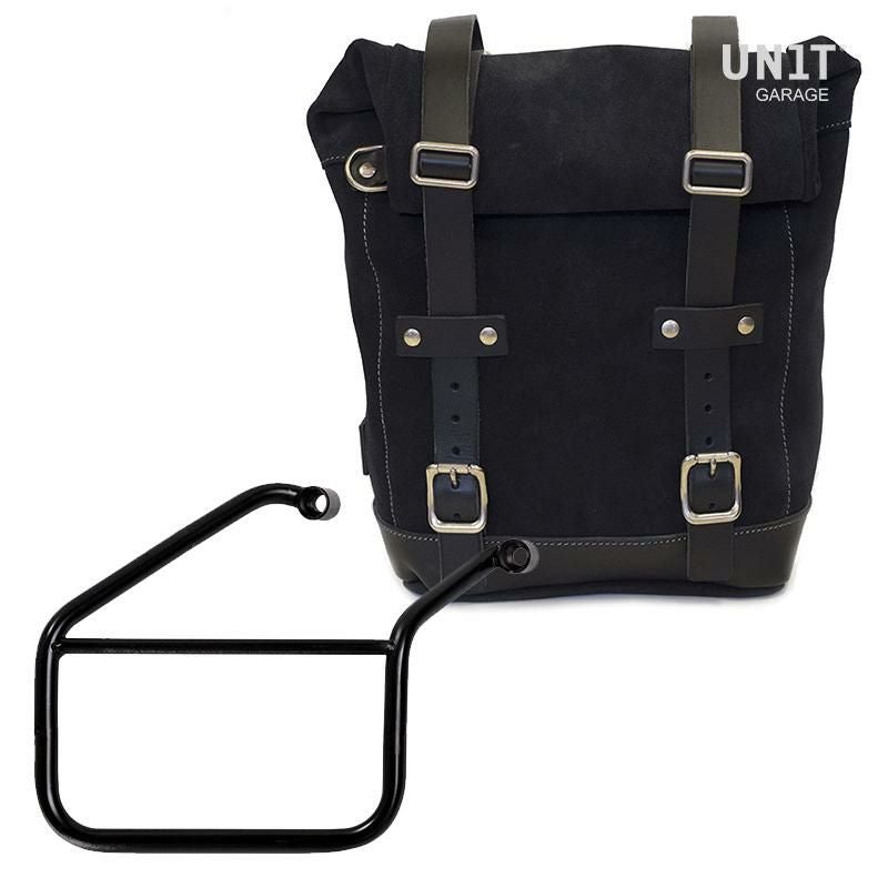 トライアンフ トライデント660専用、UNIT GARAGEのワックス防水加工スエードレザー製サイドバッグと右側サポートフレームのセットです。