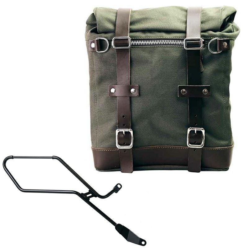 トライアンフ ボンネビル ボバー専用、UNIT GARAGEのキャンバス製サイドバッグと右側サポートフレームのセットです。