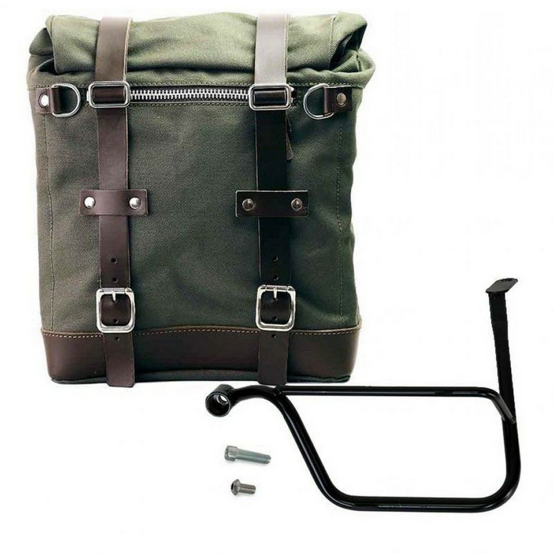 スラクストン/R/RS スピードツイン1200 サイドバッグ キャンバス 22L-30L グリーン/ブラウン + 左側サイドバッグフレーム UNIT GARAGE