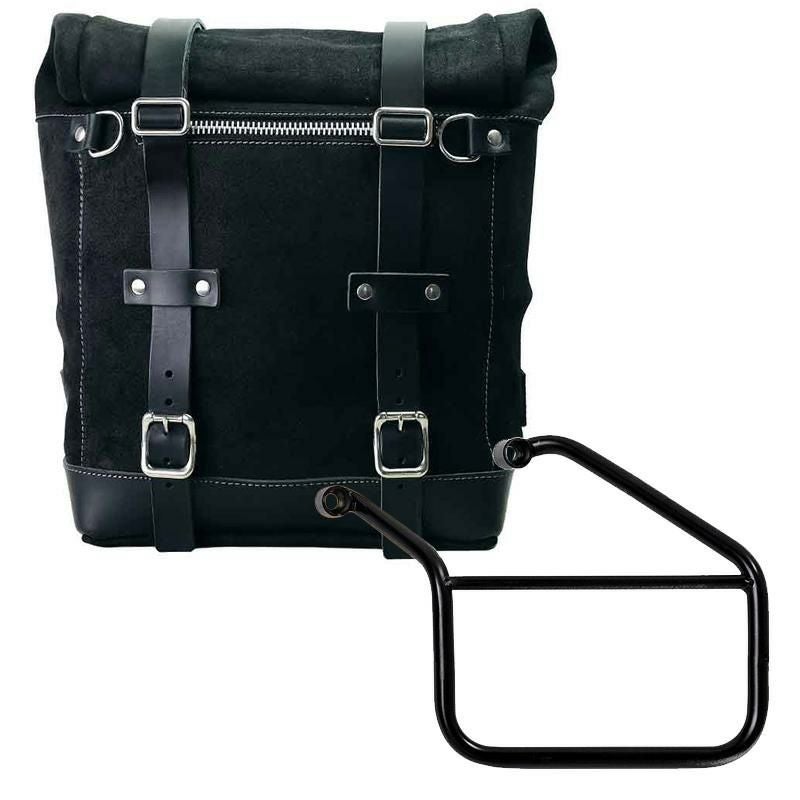 トライアンフ トライデント660専用、UNIT GARAGEのワックス防水加工スエードレザー製サイドバッグと左側サポートフレームのセットです。