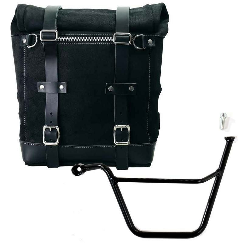トライアンフ スピードツイン900専用、UNIT GARAGEのワックス防水加工スエードレザー製サイドバッグと左側サポートフレームのセットです。