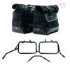 トライアンフ スピード400/スクランブラー400X 用、ワックススエード地のカルトサイドパニアバッグジェットブラック+ステンレス製クイックリリースシステム&ロック付きアルミバックプレー+アトラスアルミニウムパニア用ブラックカラーサイドフレームの左右セット