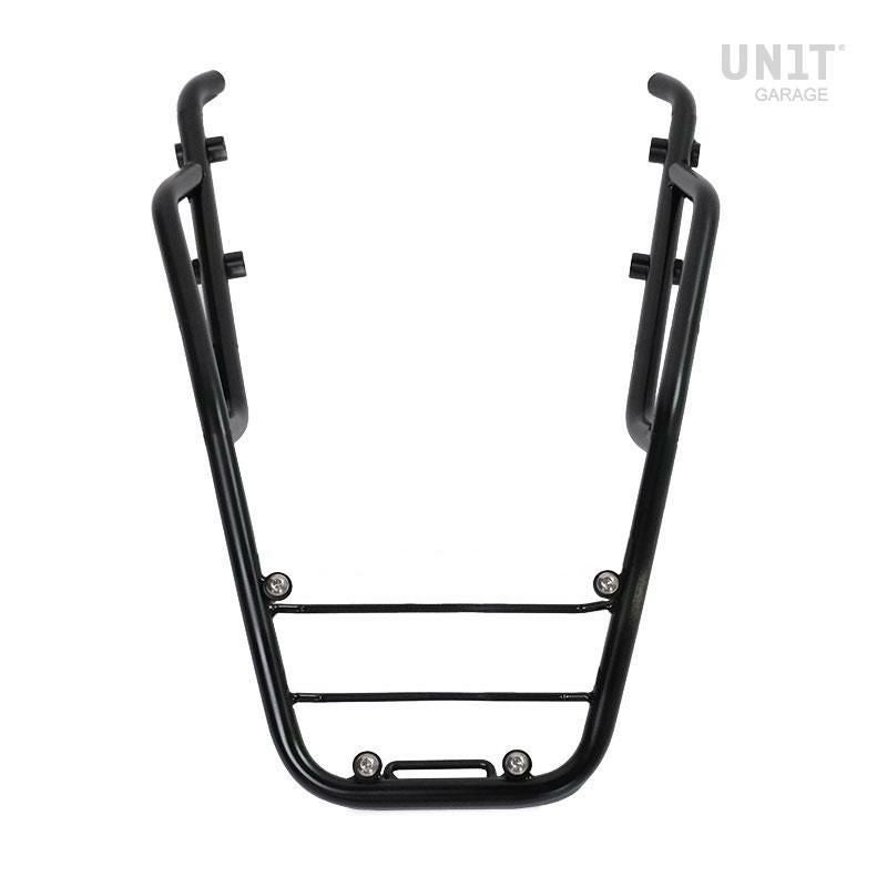 【商品説明】 トライデント660用のユニットガレージ ラゲッジラック。 ラゲッジラックはスチールチューブ製で、マットブラックエポキシパウダー仕上げです。 後部にはパッセンジャー用のハンドルが装備され、 付属のネジで簡単に元のバイクに固定することができます。 耐荷重:10kg ※最高のものを提供するために、常に製品の細部を改良しています。画像は旧バージョンを参照している場合があります。