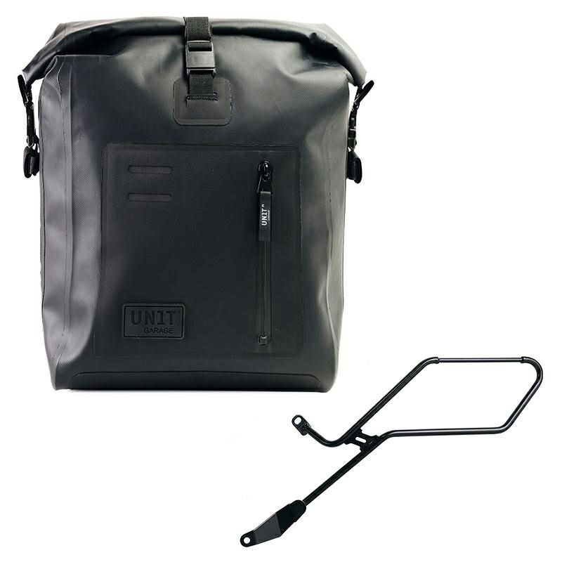 トライアンフ ボンネビル ボバー専用、UNIT GARAGE製のTPUサイドバッグと左側サポートフレームのセットです。