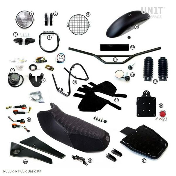 R850R或いはR1100Rをユニットガレージ製品でカスタマイズするベーシックキットです ベーシックキットは下記の部品で構成されます