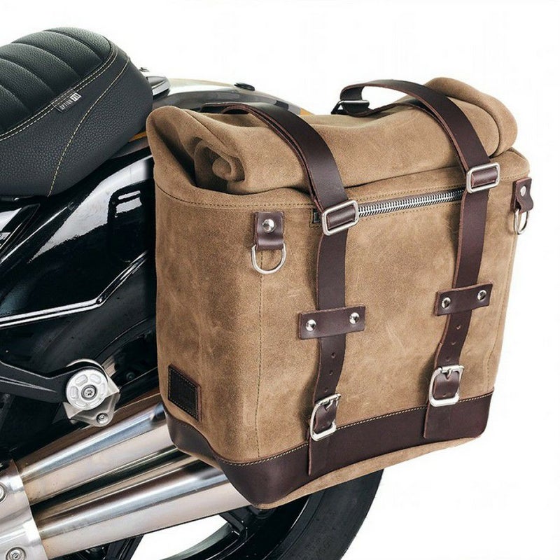 【商品説明】 BMW R12用のユニットガレージのサイドバッグ ワックススウェード + 左側サイドバッグフレーム。 イタリアでハンドメイドされた、丈夫で高品質なワックス加工スエードを使用したバッグです。ワックス加工により防水性を高めています。 取り外し可能な硬質素材のコアを採用しているため、バッグが空の状態でも形状を保ちます。 3mm厚のレザー仕上げで細部までこだわり、素材と同様にシンプルでピュアな印象を与えます。 付属のクイックリリースシステムでバッグフレームに簡単に取り付けられます。 バッグ背面にはフレーム自体をロックするためのロックも付いています。 ジェットヘルメットも収まるサイズで、外側からアクセスできるジッパー付きの大型フロントポケットを備えています。 高さ35cm(最大50cmまで拡張可能)、幅32cm、奥行き20cm。 22L~30L 2.75kg サイドバッグフレームは、マットブラックエポキシ樹脂で処理されたスチール製です。 ネジが付属しており、パッセンジャーフレームの有無にかかわらず、加工の必要なくバイクに簡単に取り付けることができます。 ※装着画像は参考画像です。本製品とは異なるカラーや車種の画像を掲載している場合があります。 最高の製品を提供するために、常に製品の細部を改善しています。 画像は旧バージョンを参照している場合があります。
