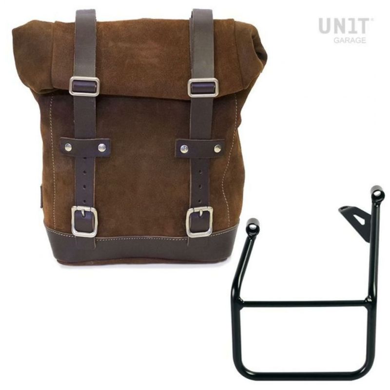 BMW R1300GS ワックス防水加工スエードレザーサイドバッグ コロラドブラウン&サイドバッグサポート フレーム左側キット ユニットガレージ